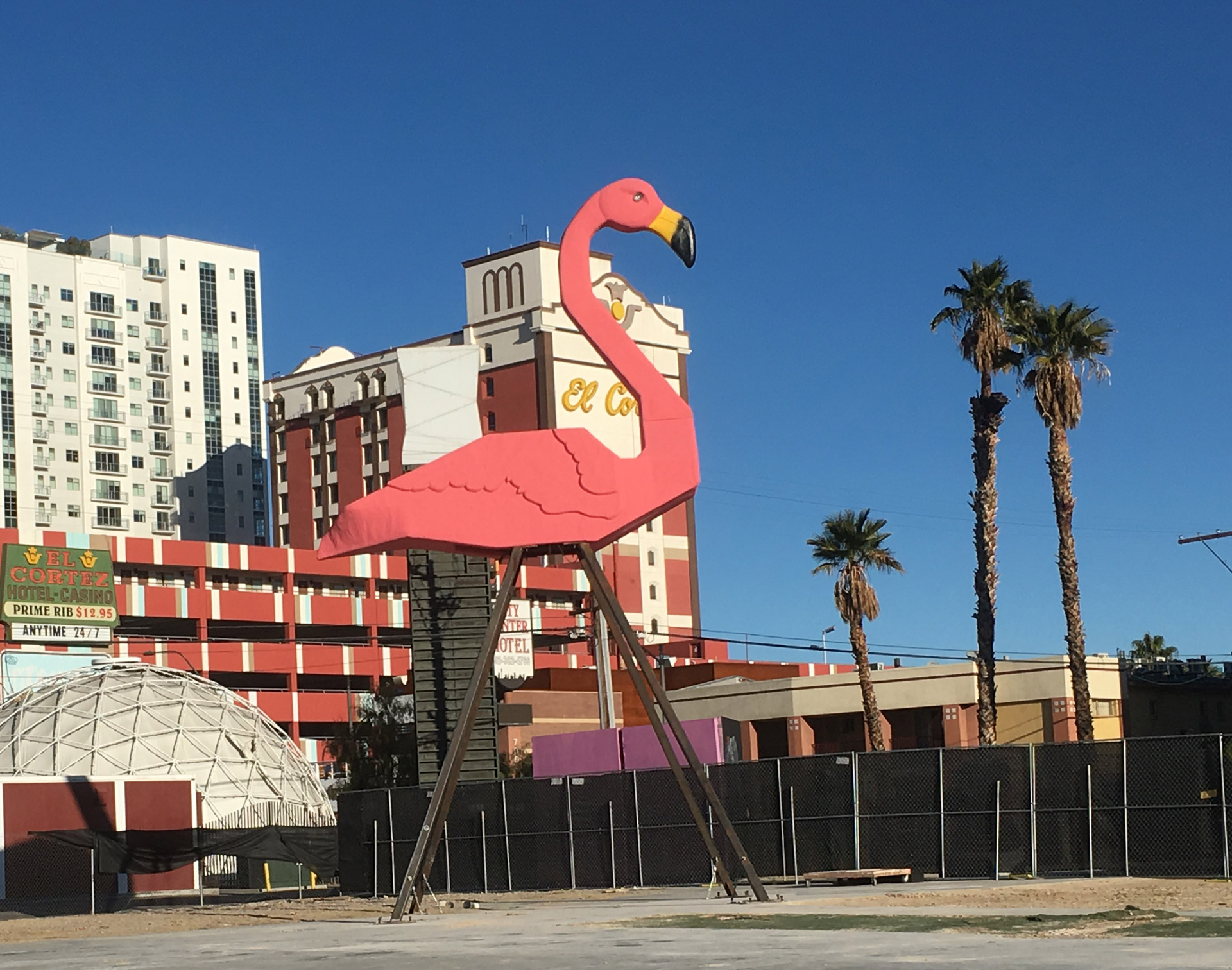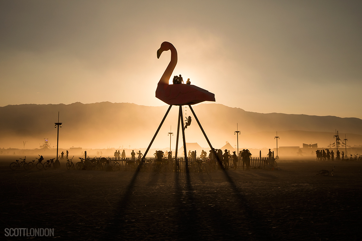 His 2017 installation, Phoenicopterus Rex, a climbable 40-foot tall steel and fiberglass pink flamingo sculpture, had a central location at Burning Man 2017 and was covered by Rolling Stone, USA Today, National Geographic, W Magazine, and more. Phoenicopterus Rex received a 2017 Black Rock City Honoraria, was installed at the Lyft Art Park in Las Vegas April-December 2018 and relocated into a Downtown Las Vegas Project Art Park in January 2019.