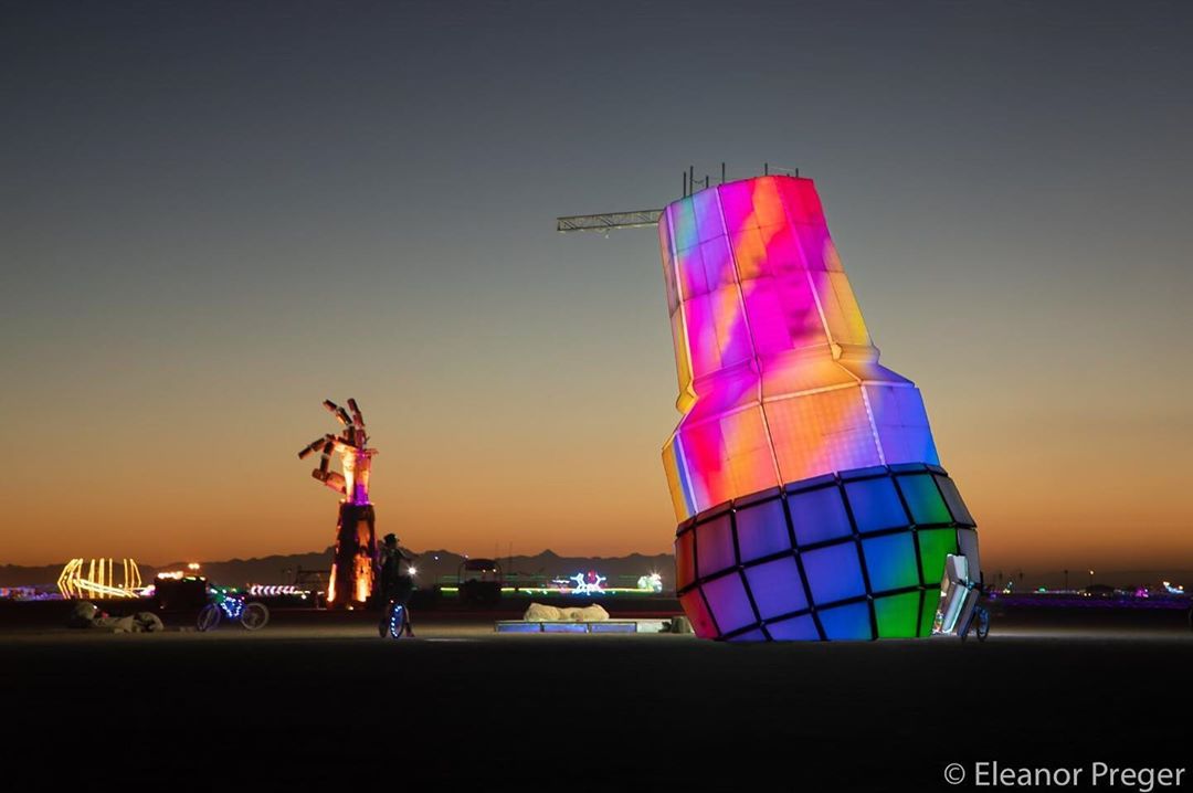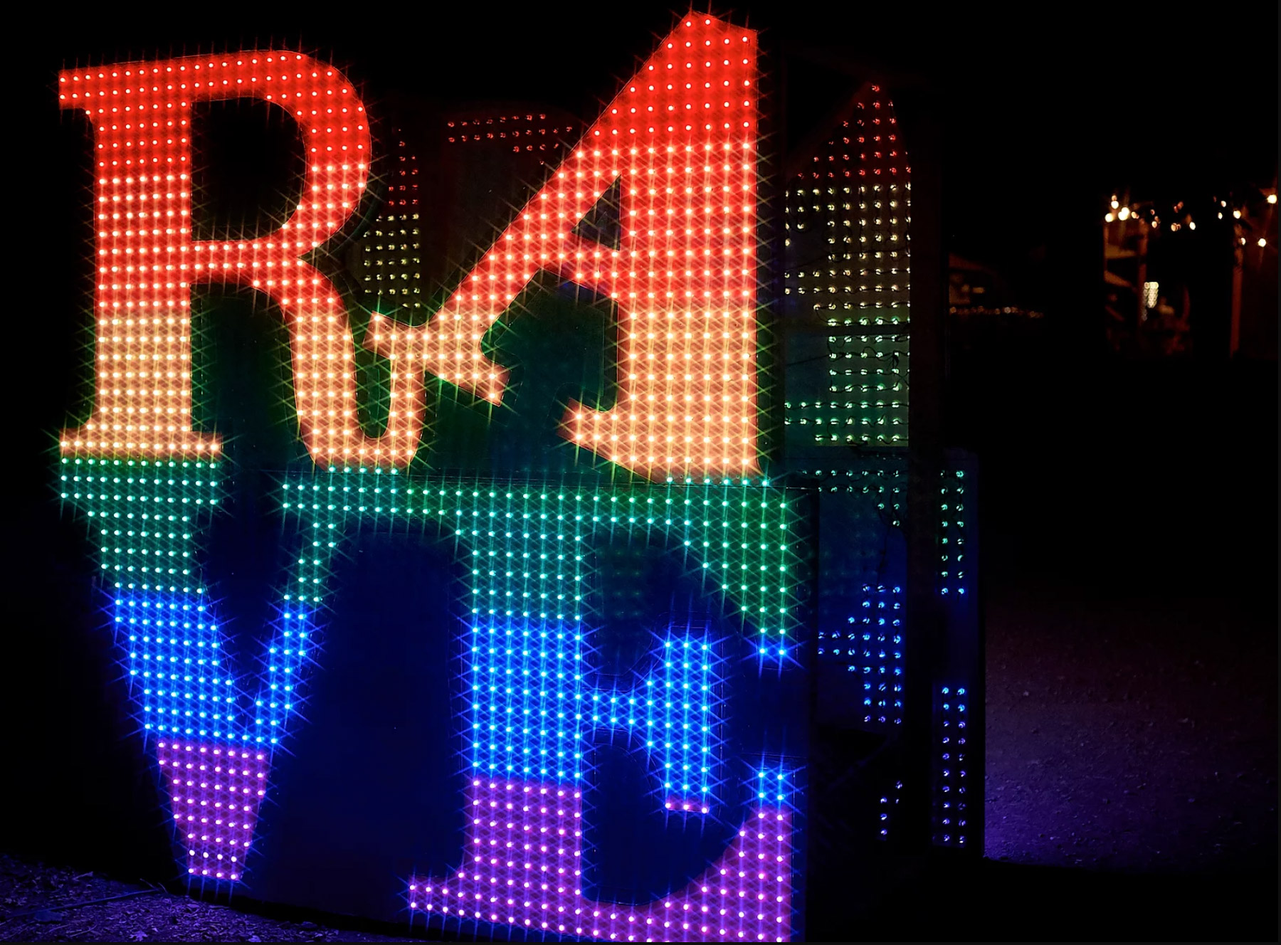 His monumental sculpture, Rainbow Bridge was featured in Art Basel Miami after debuting at Burning Man 2018. Built by over 100 volunteers, the Rainbow Bridge is a climbable 75’ wide and 30’ tall arch with a 15,000 lb steel frame, clad with vividly painted panels, and embedded with over 25,000 individually addressable LEDs. In 2019 Rainbow Bridge was featured at EDC Las Vegas, BLINK Cincinnati, and EDC Orlando. Rainbow Bridge has been covered extensively, including The Independent, ArtNet, TimeOut, USAToday, San Francisco Chronicle, and the New York Daily News.